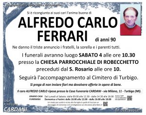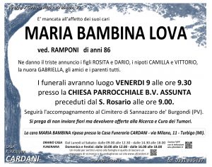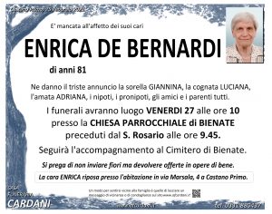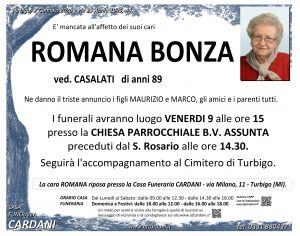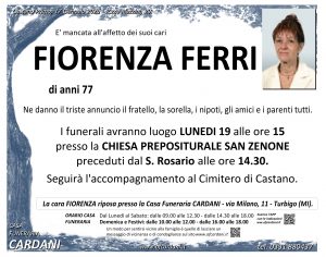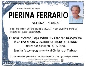 Vengono inseriti di seguito solo testi autorizzati alla pubblicazione online. Invitiamo quindi le persone che non dovessero trovare le necrologie di un proprio caro a contattarci: saremo lieti di aiutarvi fornendo le informazioni a voi necessarie.